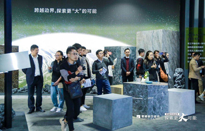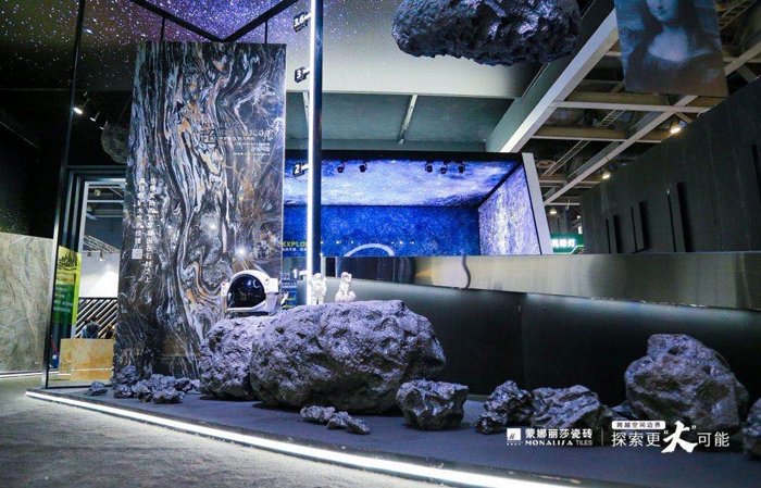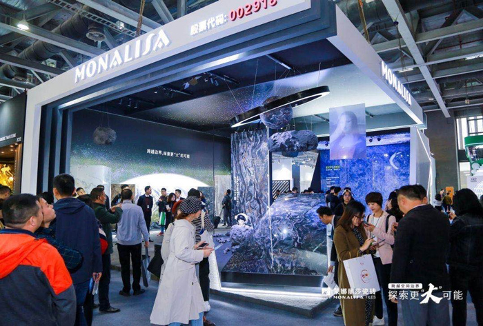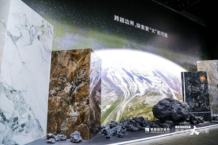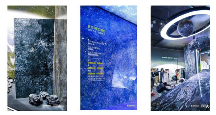 以“新生FRESH”为主题的2019广州设计周于12月5日开幕,6大展区展览规模超120000㎡,云集20多个国家的近1000家设计、艺术、创意、家居、智能和高级定制等企业和机构联合展出。在这设计大咖云集的秀场上,蒙娜丽莎瓷砖以“探索”的理念出发,从浩瀚的太空获得灵感,将最新的科研成果3600×1600(mm)陶瓷大板与星际空间的设计相结合,碰撞出璀璨的艺术火花,邀请全场数万名参观者共赴一场浪漫的“探索之旅”。