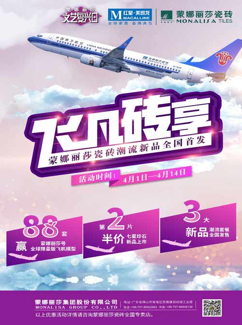 更多活动信息,可登陆蒙娜丽莎瓷砖官网(m.csblls.cn)了解或详询当地蒙娜丽莎瓷砖专卖店。