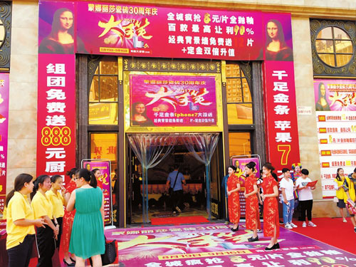 蒙娜丽莎瓷砖立足湖北市场30年,靠的就是蒙娜丽莎过硬的品质和“为顾客着想,让顾客满意”的服务宗旨,在市场上树立起了强大的品牌形象,得到了消费者的认可。活动期间,销售人员通过对老客户的电话回访、满意度调查、瓷砖保养小窍门介绍等形式,再到30周年庆“大手笔”活动的推介,因此有好多客户都是以老带新,甚至有位老客户在现场为此次活动代言,他说,十几年前买的蒙娜丽莎瓷砖现在还像新的一样,而且蒙娜丽莎瓷砖都是广东本地生产,没有在其它地区贴牌。这样更有说服力的现场演绎,影响着其他前来看板的客户纷纷下单。此次活动圆满成功,与集团总部对此次活动的大力支持以及本公司优秀的策划方案及领导层随时根据市场来调整战略战术是分不开的,同时也展现了蒙娜丽莎销售人员团结一心、齐心协力、勇于争先的团队精神。