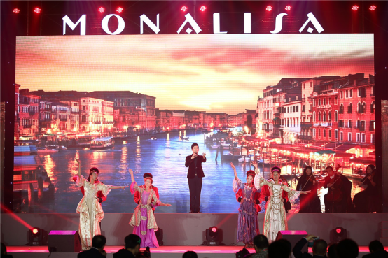 新品发布会一款款融合实用环保和人文艺术理念,前卫流行与简约时尚的设计的蒙娜丽莎瓷砖新品在珠江形象大使的带领下和美妙的歌剧秀中展现在嘉宾面前。在创意无限的视听方式演绎下,蒙娜丽莎瓷砖变成镌刻时尚与艺术的载体。