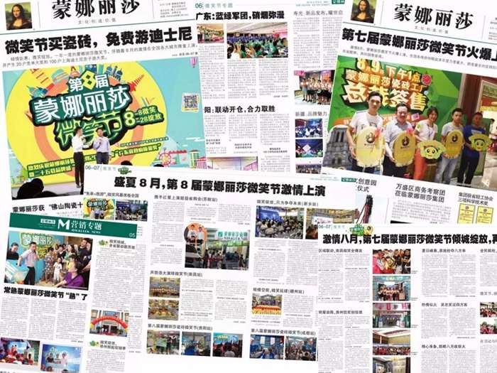 惊喜的促销优惠、创意的消费体验,让“蒙娜丽莎微笑节”这个品牌IP深受消费者喜爱,也斩获中国广告长城奖·广告主奖、澳门国际广告节案例大奖和ADMEN国际大奖等多项广告创新大奖。未来,蒙娜丽莎瓷砖将继续传递“微笑”,为用户带来更好的产品与享受,同时秉持多元化、时尚化、社交化、国际化的品牌理念,带给消费者更多的精彩!