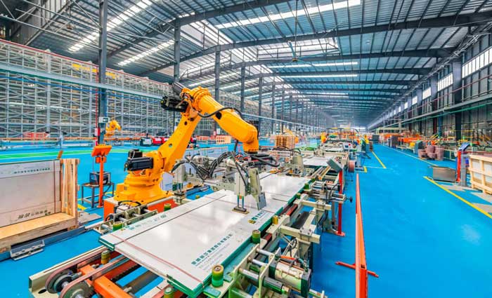 走进蒙娜丽莎特高板数智化示范车间,节能、高效的全球先进生产设备覆盖生产流程,数控装备自动化水平超过90%,生产效率和产品质量不断提高,补齐传统制造业生产短板。