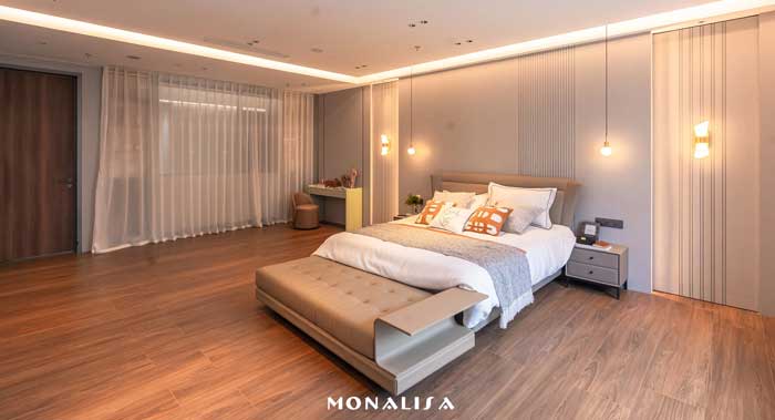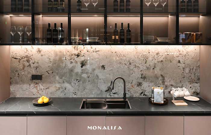 在强大的科研创新实力和智能工厂技术支撑下,蒙娜丽莎每年推出过百款高颜、高品的抗菌、止滑、防污高端性能陶瓷大板、岩板新品,同时不断突破高精尖领域,打破产品规格、功能和应用的局限,为消费者带来更优质的人居体验。