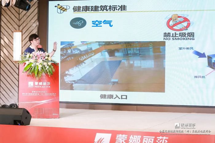 在大众健康意识逐渐加深的大背景下,如何在家居空间中提升更健康的居住体验已经变成一项至关重要的课题,蒙娜丽莎将视角转向健康与家居的深层关系,进一步深化健康家居的布局,从健康家居、健康节能、健康养老三个系统推出远红外抗菌陶瓷砖、远红外透光陶瓷、高热反射节能陶瓷板(砖)、止滑陶瓷砖等四大系列新品。从户外到室内、从墙面到地面、从橱柜到家具、从干区到湿区,为消费带来更加绿色、健康、环保、安全的新型材料及创新应用,为更多家庭实现全空间、全场景的健康防护。刘一军在活动现场解读四大新产品核心技术,从从远红外抗菌、远红外透光、可见光-近红外反射、高止滑的机理、产品花色、规格、应用等方面进行详细介绍。
