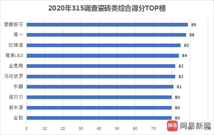 今年,网易家居315“寻找家居服务榜样”大调查聚焦时代背景,进一步升级进阶,对家居企业的“线上+线下”服务体系进行一次全面摸底。在本次315家居服务调查中,蒙娜丽莎瓷砖凭借完善的服务体系和线上、线下亮眼表现脱颖而出,在一道道严格的调查项目中获评高分在“2020年315调查瓷砖类综合得分TOP榜”占据榜首位置,入围2020网易家居315服务调查TOP榜。
