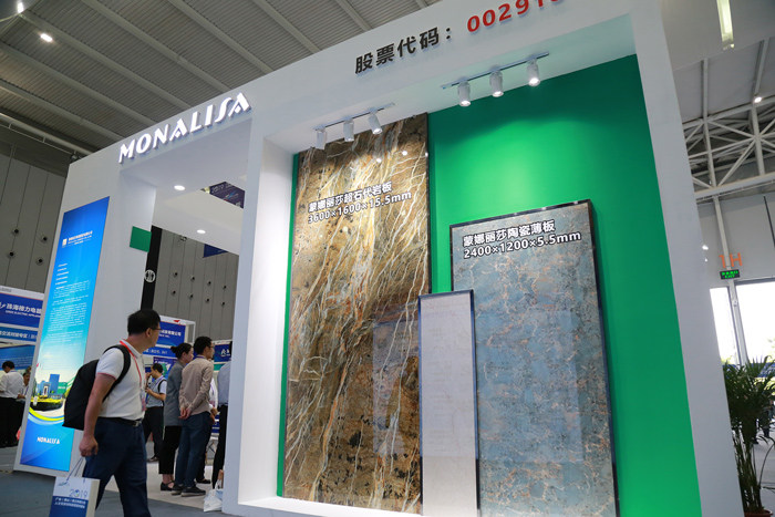 蒙娜丽莎博士后科研工作站凭借多年的技术创新成果,从全省博士后流动站、科研工作站、创新实践基地、博士工作站中脱颖而出,入选首批100个博士博士后创新平台,并应邀参加了本次大会特装展。展位上展示了1800×900(mm)、2400×1200(mm)、3600×1600(mm)等多种规格的陶瓷板及能浮在水面上的无机轻质板,成为全场的吸睛焦点。