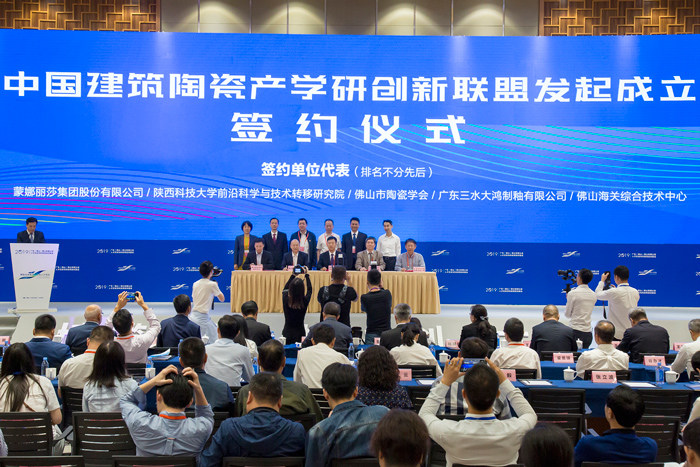 开幕式上,由蒙娜丽莎集团牵头的中国建筑陶瓷产学研创新联盟发起成立并举行了签约仪式。