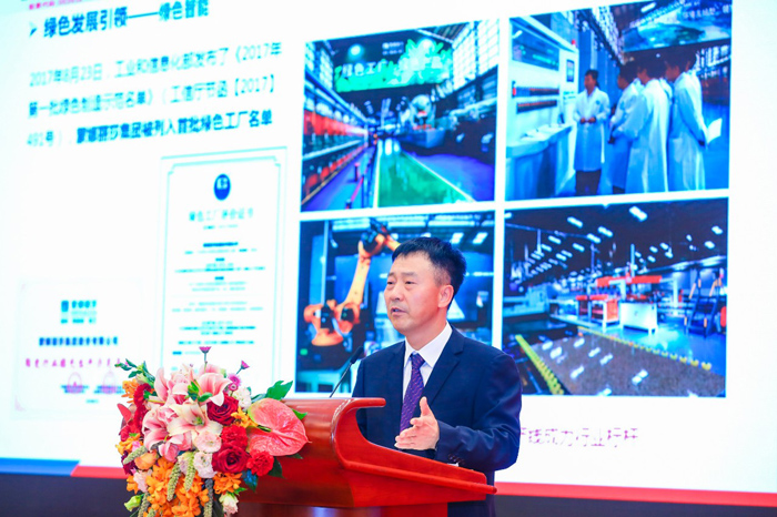 ▲ 蒙娜丽莎集团副总裁刘一军博士作陶瓷板十二年科技创新绿色发展主题报告