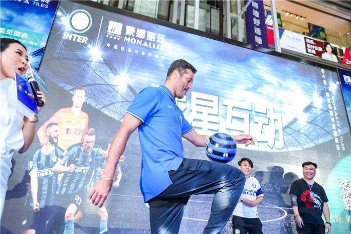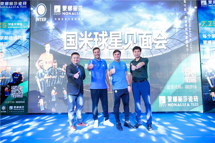 7月24日,南京奥体中心上演意大利国家德比大战,国际米兰与尤文图斯两大足球俱乐部激烈对决。作为国际米兰中国区官方合作伙伴的蒙娜丽莎用实际行动对蓝黑军团进行有力声援,并于25日下午在南京红星美凯龙卡子门商场举行国际米兰传奇球星见面会,邀请国际米兰传奇球星萨内蒂和塞萨尔亲临现场与广大球迷互动。