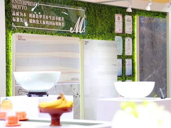 在中国品牌日的「瓷耀中华」展区上,蒙娜丽莎展位虽然不大,但阵容很大,集结了蒙娜丽莎2019年主打产品——超石代岩板、薄砖、七星珍石等产品,精炼简洁的展现出陶瓷板(砖)在未来家居空间应用上的创意及优势,彰显出中国建筑陶瓷的核心竞争力。