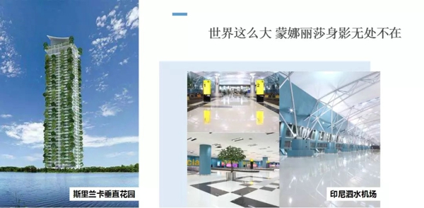 有了可靠的高端产品,蒙娜丽莎“走出去”的步伐也更加矫健。在一带一路的政策支持下,蒙娜丽莎先后在印尼、印度、斯里兰卡、柬埔寨、马来西亚、沙特、伊朗等国家建立了品牌展厅和专卖店,参与多个海外项目,由此吹响了“中国制造”挺进国际市场的冲锋号。