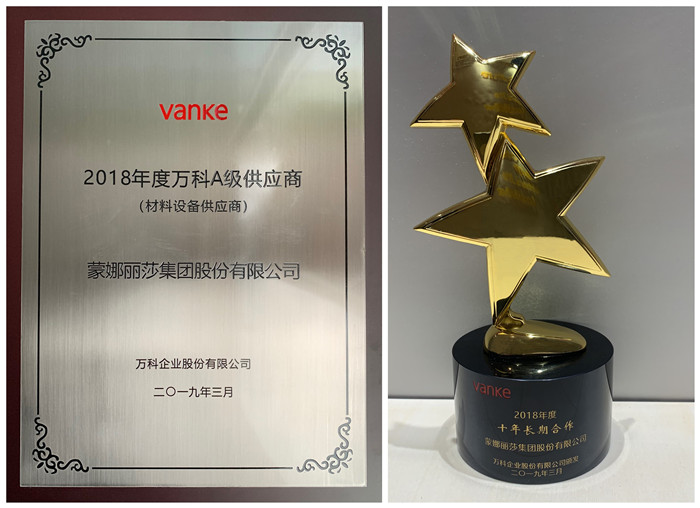 3月7日, “凝聚同心 合伙共赢”2019万科集团合作伙伴春茗会在深圳举行,蒙娜丽莎集团荣获“万科A级供应商”和“十年长期合作奖”殊荣。在以规范科学、要求严格而著称的万科供应商评估体系下,蒙娜丽莎集团已连续4年获评“万科A级供应商”。