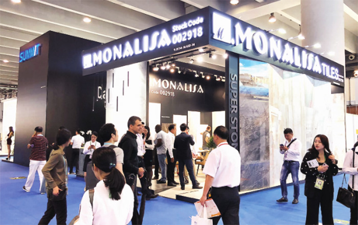 本届广交会出口展按16大类商品设置51个展区,展位总数59647个,参展企业24947家。品牌展位12125个,占20%;一般性展位47522个,占80%。第一期参展企业8735家,第二期7561家,第三期8651家。蒙娜丽莎作为中国建陶业的优秀标杆企业,参加了第一期建材展。