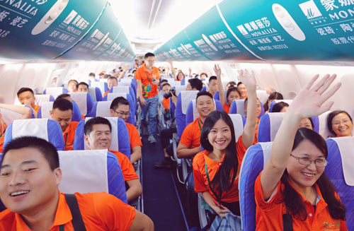 消费者们快乐搭乘“蒙娜丽莎亚运助威主题航班”