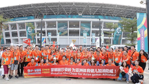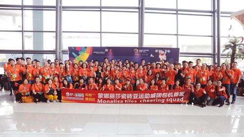 作为本届亚运会官方支持合作伙伴,蒙娜丽莎集团与近百位消费者、合作伙伴及企业员工组成“蒙娜丽莎亚运助威团”,包机出发印尼雅加达,一睹亚运开幕式之震撼,“零距离”为亚洲能量喝彩,为亚运健儿加油助威!