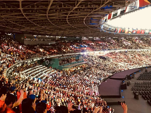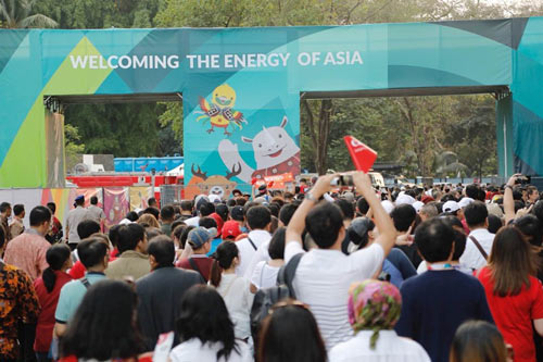 印尼时间8月18日19时,能容纳数万人的雅加达亚运会主体育场早已座无虚席,当晚气氛热烈,现场人声鼎沸,来自世界各个国家和地区的观众高举旗帜,为亚运体育健儿欢呼呐喊。