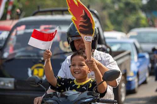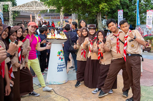 当地时间21时20分,印尼总统佐科·维多多宣布第十八届亚运会开幕。开幕式的高潮出现在主火炬点燃时。本届亚运会圣火采集自首届亚运会举办地印度新德里国家体育场,圣火传递第一站从日惹市到爪哇岛另一个主要城市梭罗市,随后在印尼境内53个城市传递。