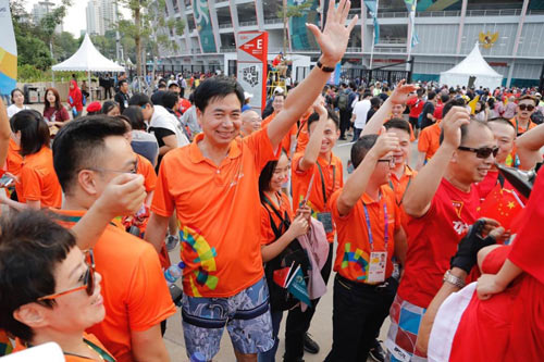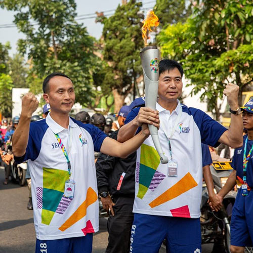 蒙娜丽莎集团总裁萧礼标、副总裁邓啟棠传递亚运圣火