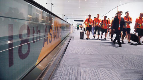 8月17日,蒙娜丽莎员工代表及获奖消费者旅客集结广州白云机场,在简短的开机仪式过后,搭乘“蒙娜丽莎亚运助威主题航班”,历时飞行4个半小时成功抵达印尼雅加达。