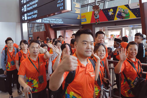 2018年8月17日,蒙娜丽莎集团带领由消费者顾客、企业员工代表组成的百人“亚运助威团”,在广州白云机场包机出发印尼雅加达,观看第18届亚运会开幕式,为中国健儿加油助威。