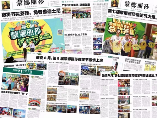 早在2009年初,为更深层次的挖掘品牌文化,实现与终端的强互动和促销相结合,蒙娜丽莎正式以微笑文化为主线开展每年一届的“蒙娜丽莎微笑节”,并在每年的8月份全国范围同步启动,开辟出一个促销淡季中独特的促销节点。