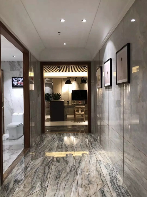 完美的石材纹路需要更为延展的承载空间,2017年,蒙娜丽莎在引进国际先进技术装备的基础上,成功推出1200×2400mm大规格陶瓷大板。颠覆以往陶瓷砖600×600mm、800×800mm的普通规格,蒙娜丽莎陶瓷大板拥有1200×2400mm大规格尺寸,能最大限度地承载丰富的纹理图案和细节,视觉效果高清立体,铺贴效果奢华大气,极大的满足酒店、别墅、商场等高端场所对奢华气派的装饰需求。