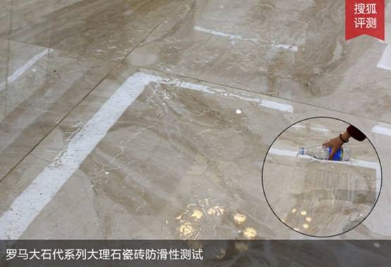 抛釉砖表面光滑,那么它的止滑性能会不会逊一些?不妨来看看2017年蒙娜丽莎瓷砖新推的抛釉通体大理石瓷砖——罗马大石代的产品测评。