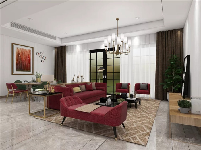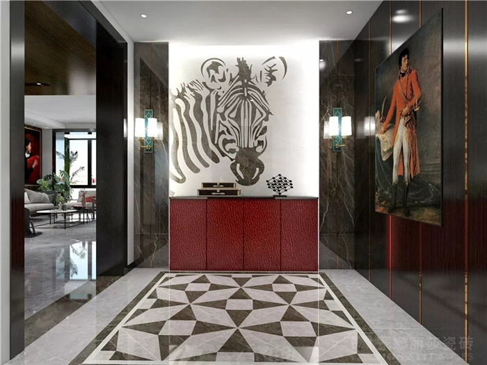 以罗马新石代中性色的产品奠定空间主要色调,再加一点丑角红点缀,艳丽而不失优雅,让视线有了落脚点,让人眼前一亮。