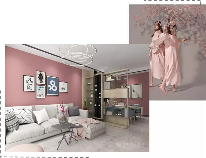 它是粉红色和高级灰的结合,偏向于当下流行的“莫兰迪色系”,洋溢着年轻的活泼和浪漫,让人不禁陷入唯美的想象。