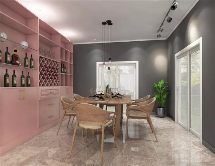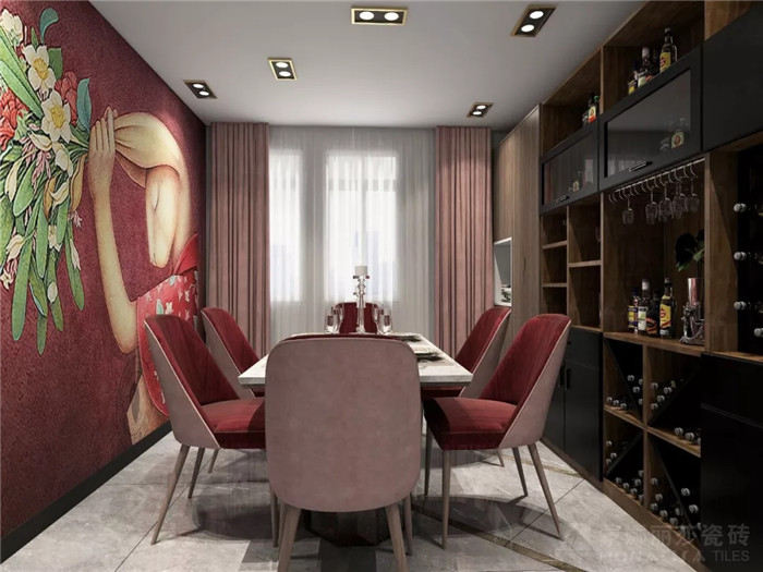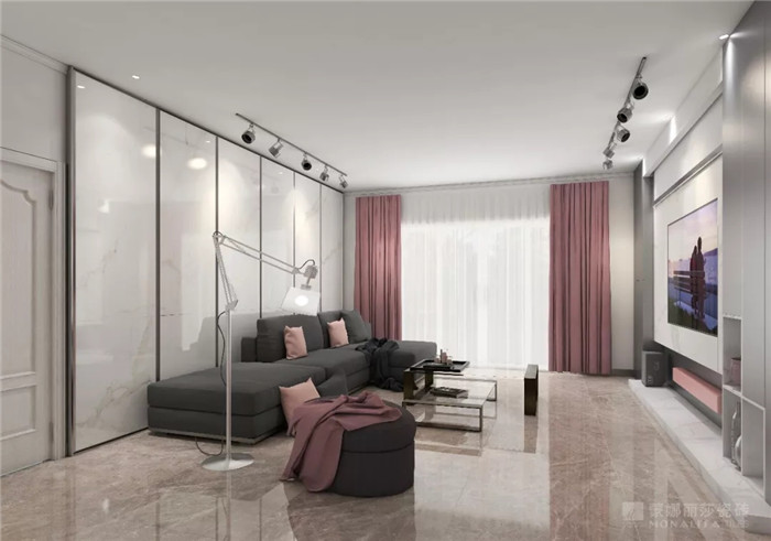用粉色的软装点染空间,洋溢的甜美昭示着春天的痕迹。在大理石瓷砖的映衬下,为灰色调的空间带入一份柔和。越是简单、淡雅的颜色组合,就越能从多余的诠释中解放。罗马宝石、薄砖2.0宫廷灰与压缩玫瑰红搭配产生平和自然的美,正符合当代年轻人追求悠然、回归纯真的生活方式。