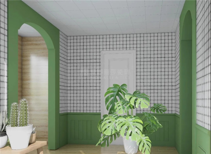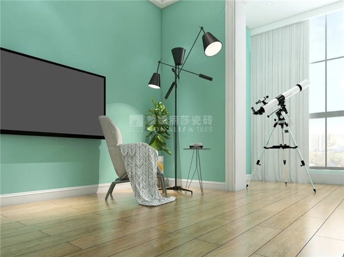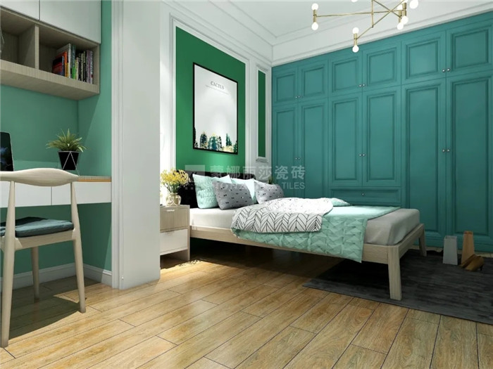 很多人觉得薄荷绿用起来很难与空间其他配色协调,但不妨把心放宽一点,它既适合作为大面积用色,运用在墙纸、乳胶漆、瓷砖等背景材质上,也可以用在软装上成为空间的点睛之笔。