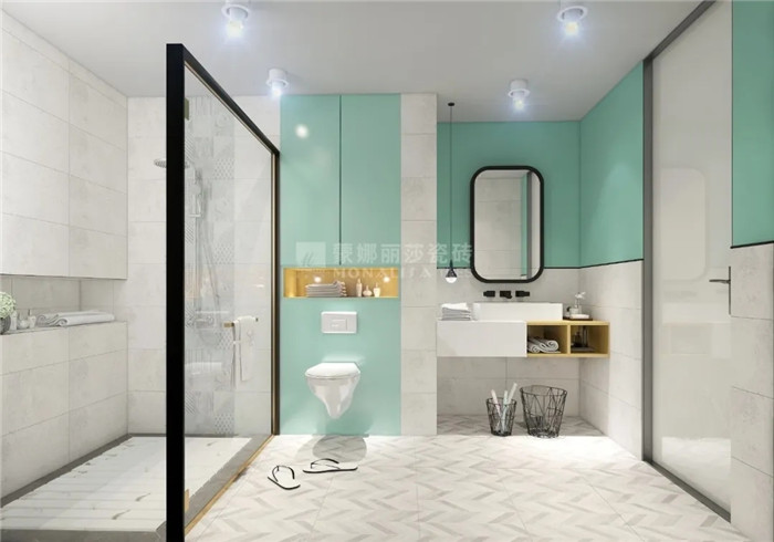 ▲卫浴间特别适合薄荷绿,沐浴的时候有大片绿色相伴,心情更加舒畅明净