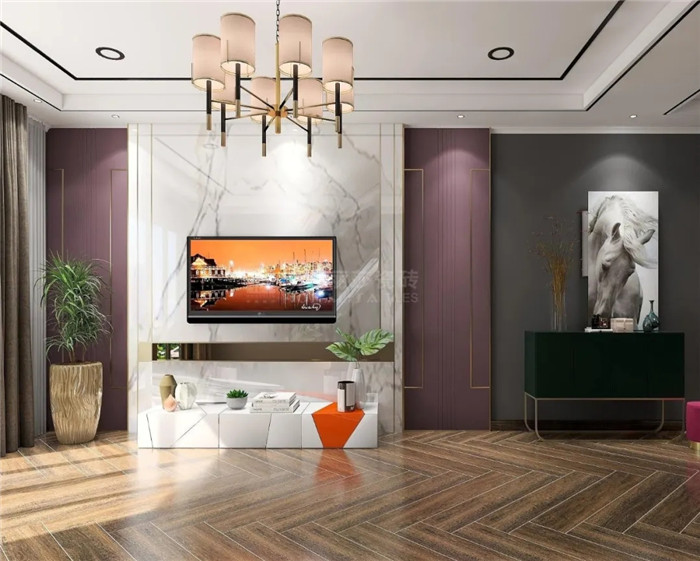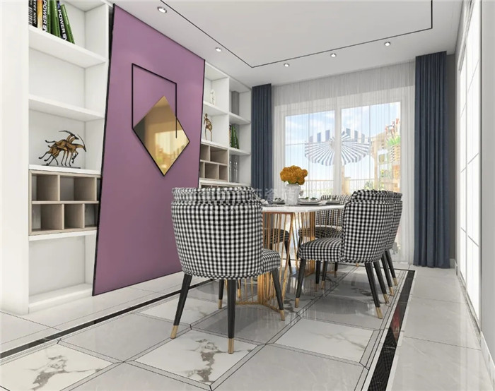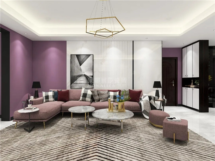 一抹紫色背景墙,可以说是空间装饰中一点惊艳的小心机,展现着居住者成熟的魅力,赋予环境内涵和深度。