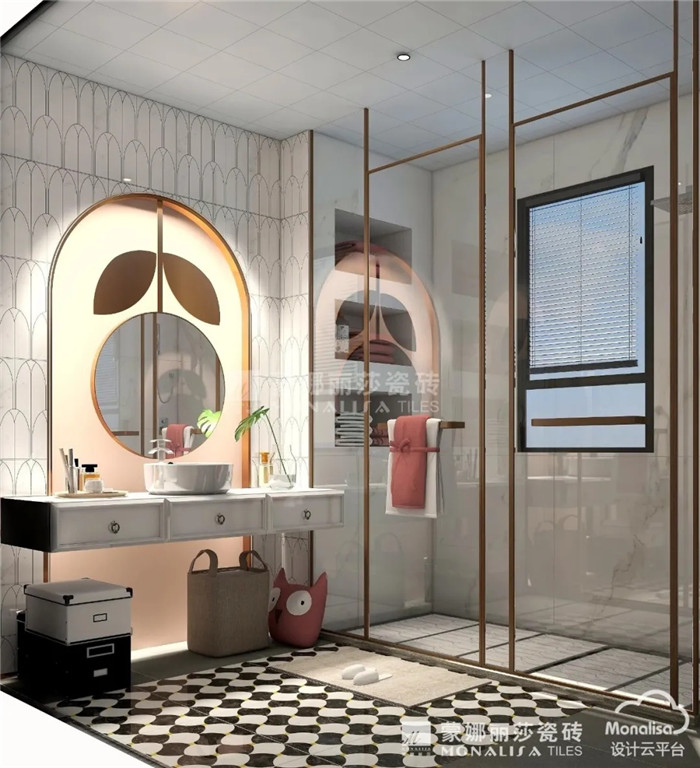 蜜瓜橙的除了拥有热情奔放的视觉效果,在作为空间的点缀色彩时也毫不逊色。与浅色系的瓷砖进行搭配,仿佛寂静中的一束光芒,点亮了空间。