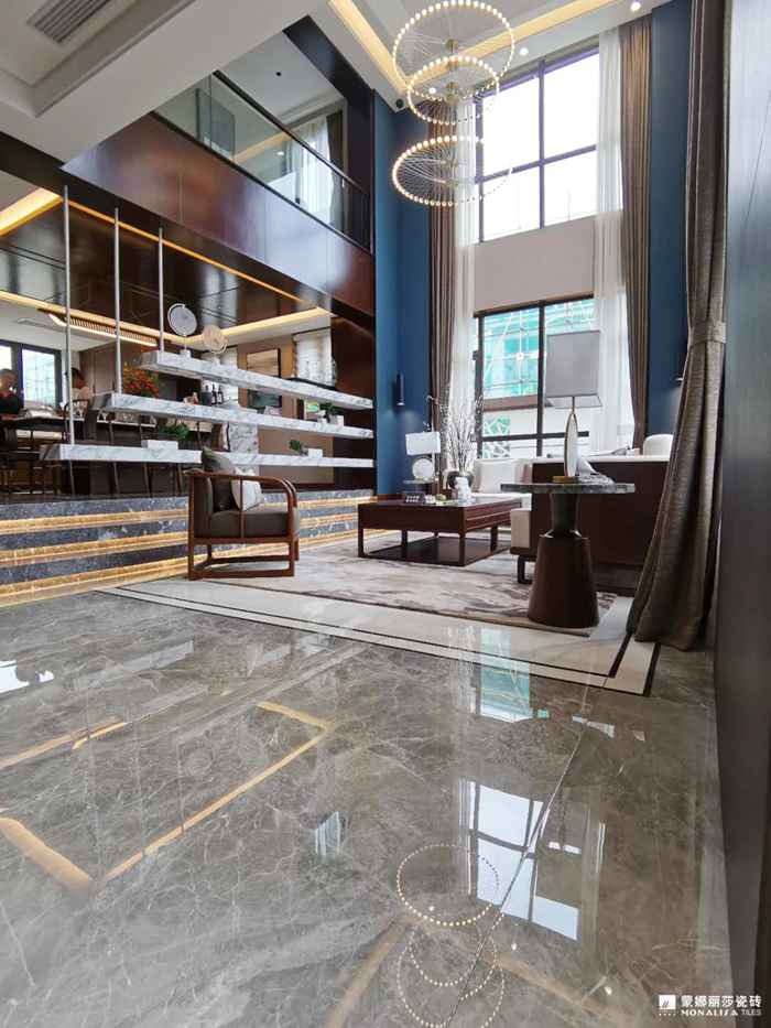 项目位于贵州铜仁,是一套接近600㎡的别墅,整个设计方案均采用蒙娜丽莎瓷砖,从色彩到细节,满足设计师想要达到的设计效果。
