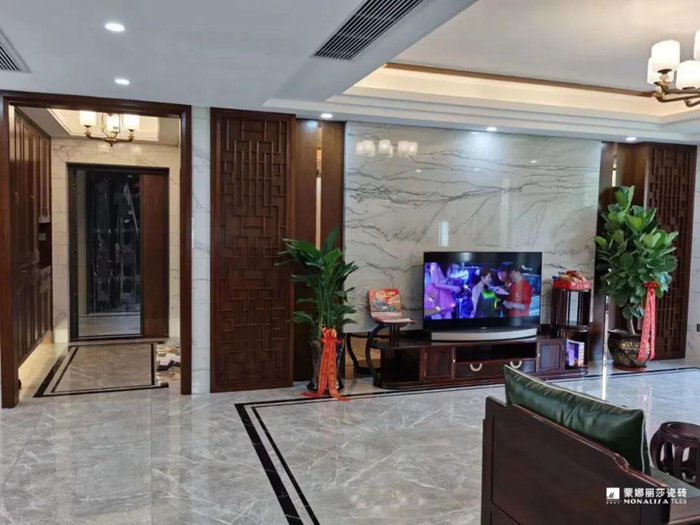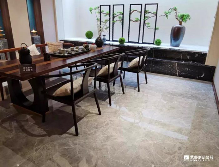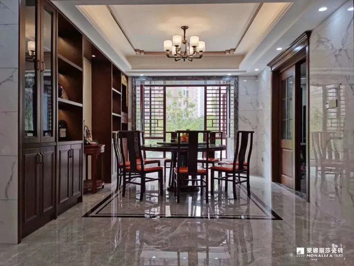 仿石瓷砖多变的纹理花色,大气典雅,很适合打造气派的新中式风格。不需要太多的色彩和装饰,就能营造出属于新中式的那种自然与人文和谐的美感来。