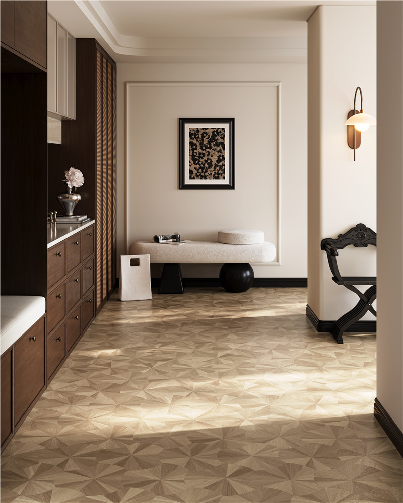 以华丽端庄的圆舞曲为灵感,深浅不一的细腻木纹随着时光曼妙起舞,旋转融合,营造出轻盈、灵动而华美的艺术感,让每一寸空间散发出优雅的气息。