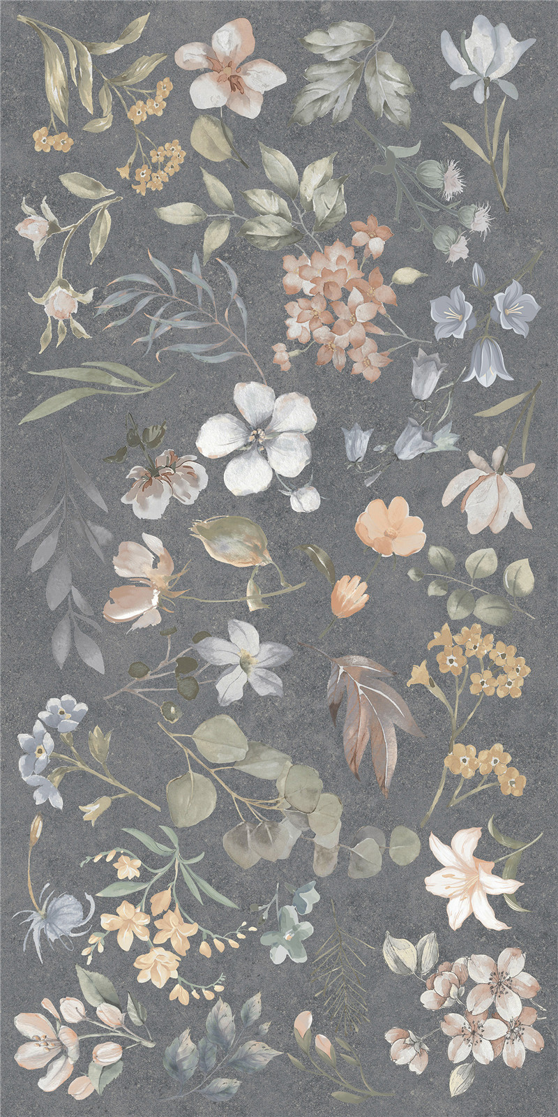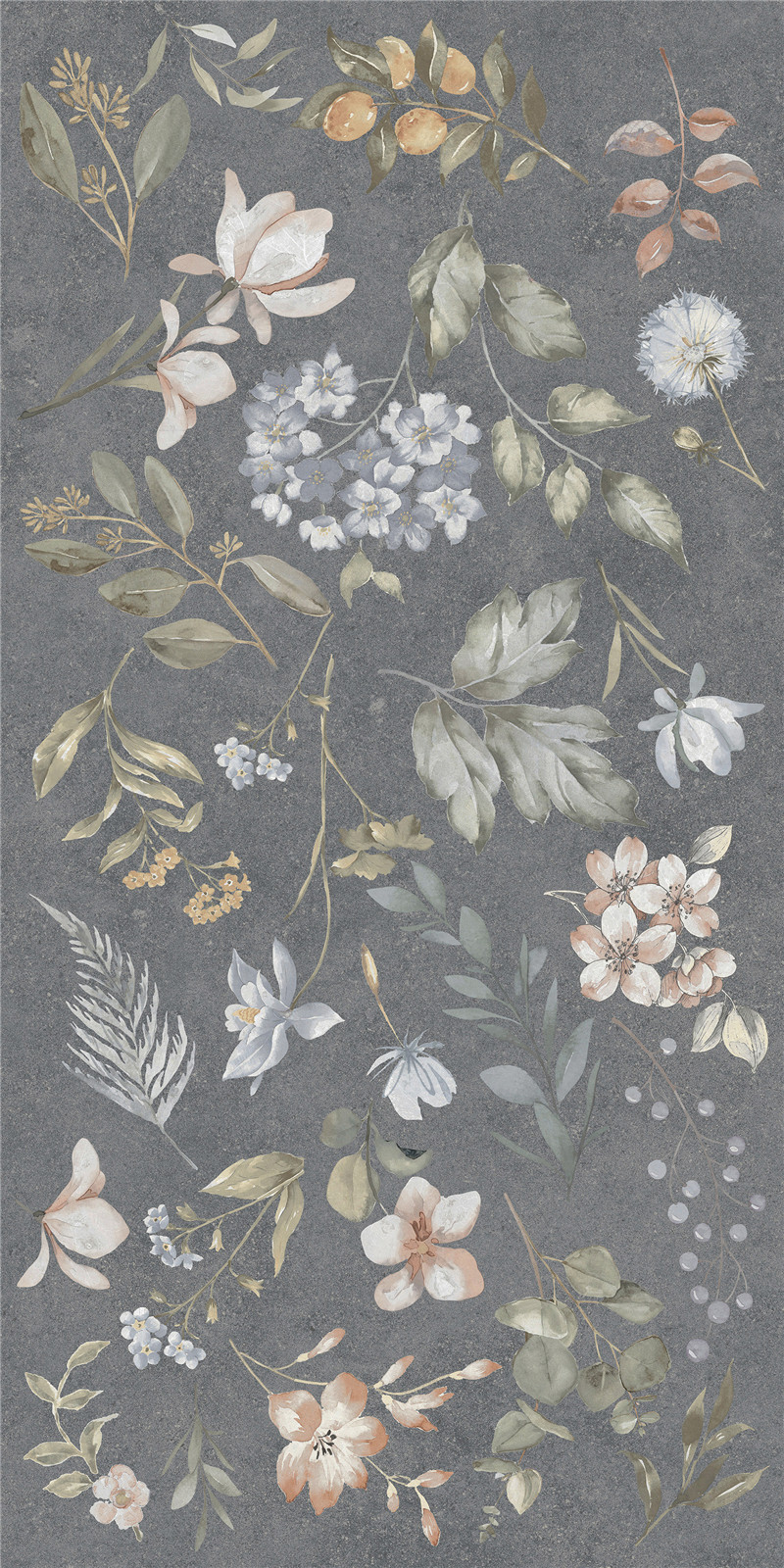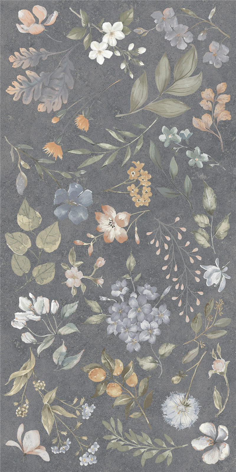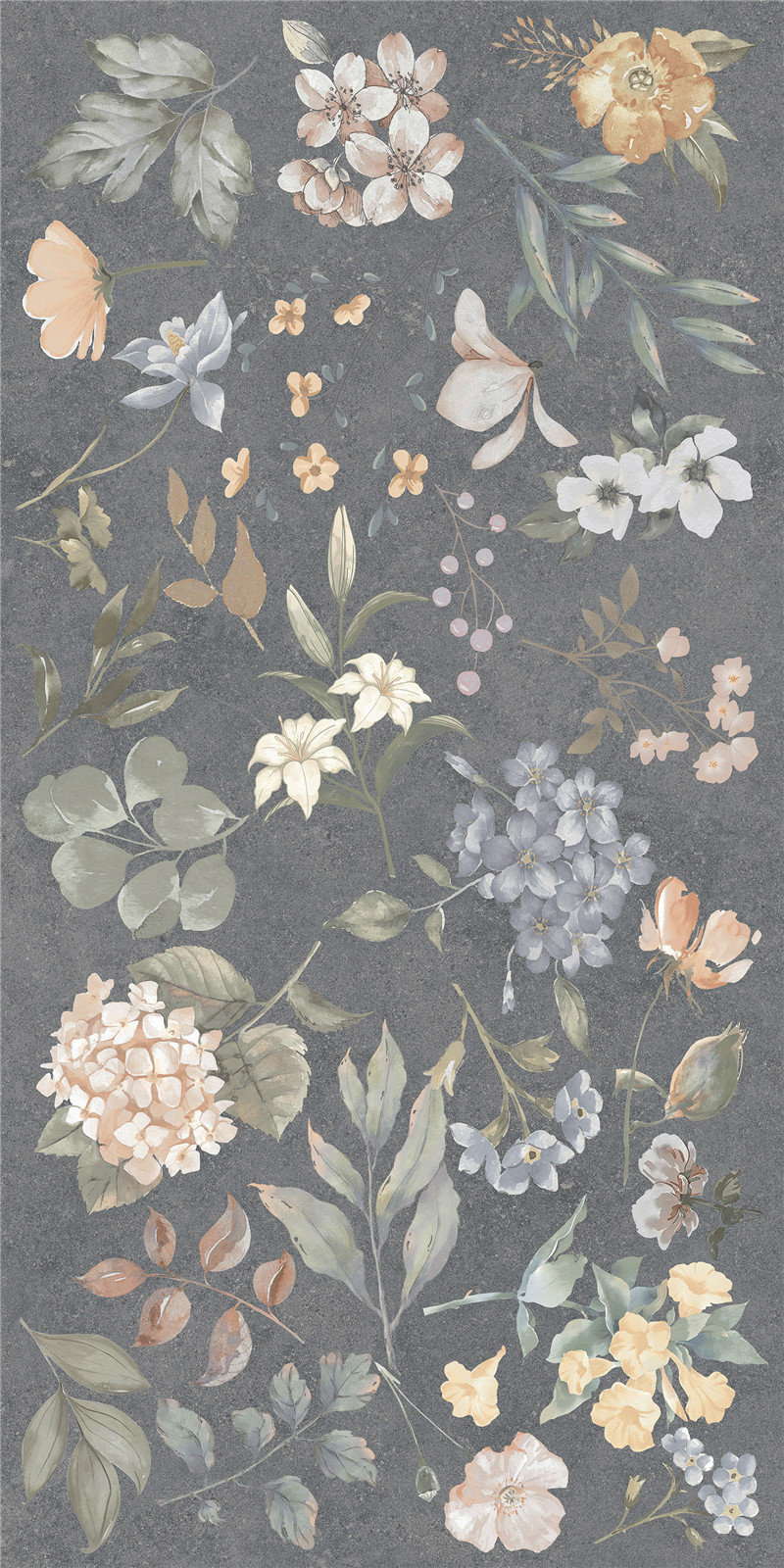 灰调如墨夜,繁花似星河漫舞。釉面细腻,彩瓣灵动,将自然诗意凝于砖上,为空间织就浪漫轻奢的艺术锦缎,尽显雅致风华。