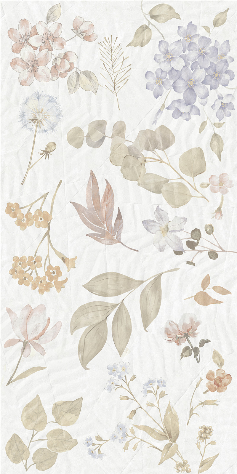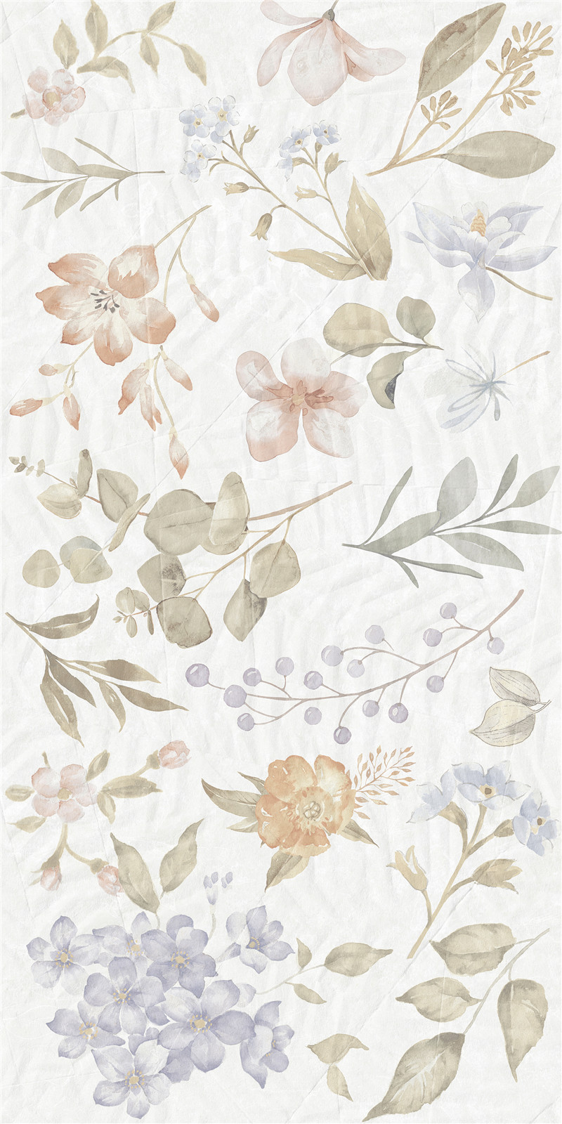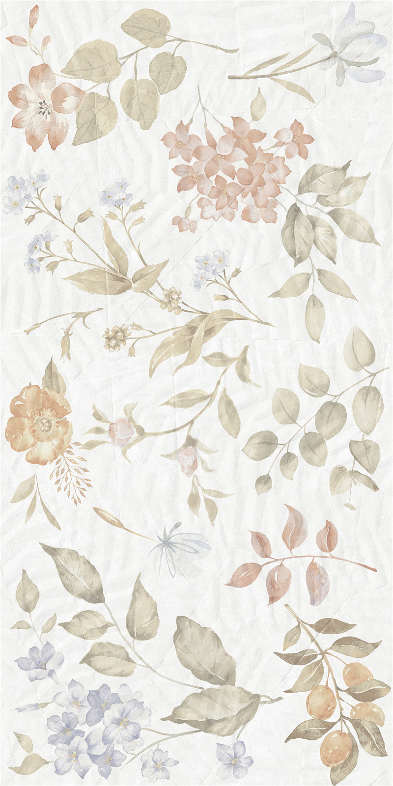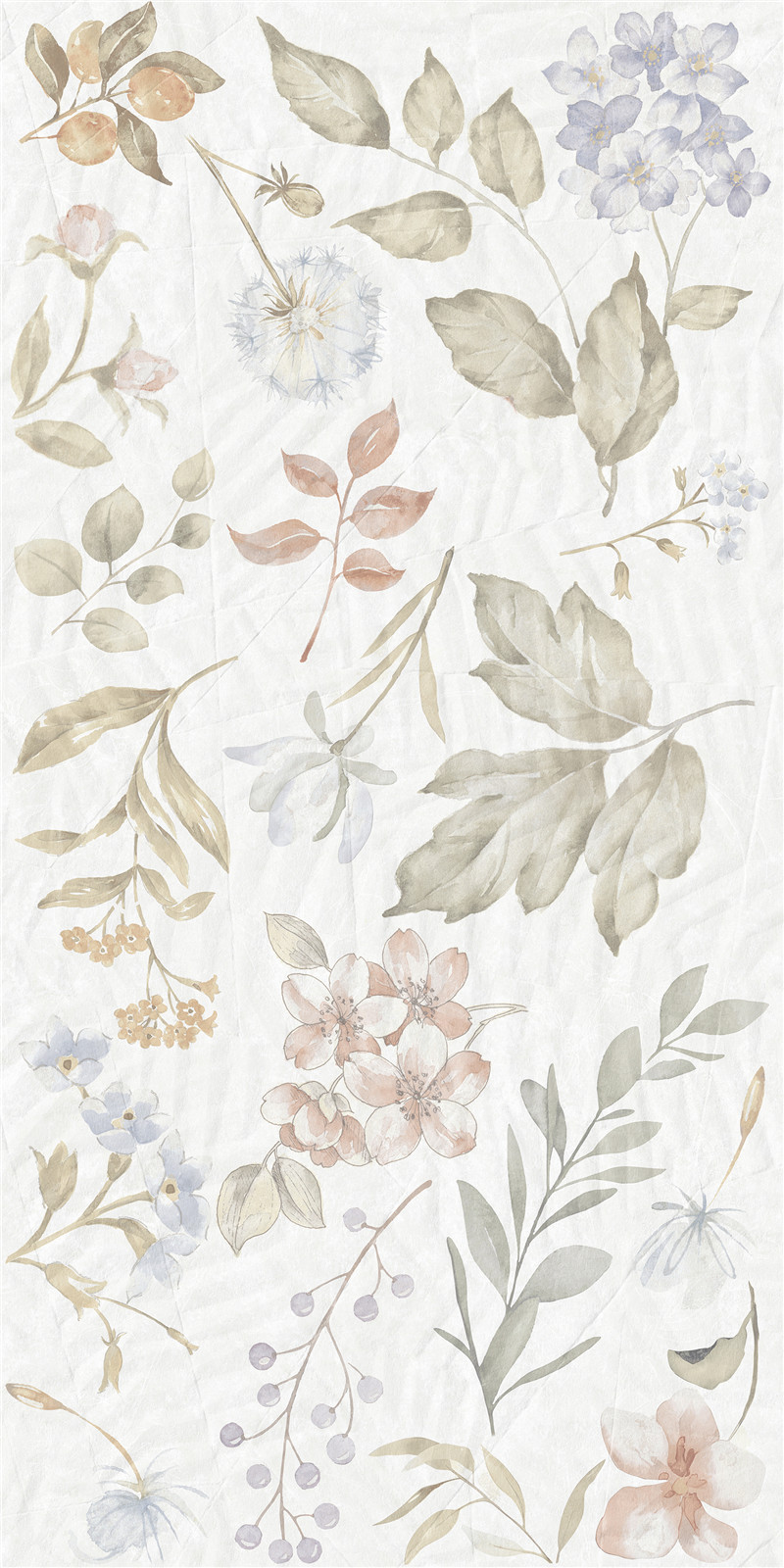 柔色花卉与叶蔓交织,浅调晕染诗意。砖面如绘梦幻园艺,花影婆娑,叶韵悠然,为空间铺展静谧浪漫的梦境,尽显自然雅致的柔情絮语。