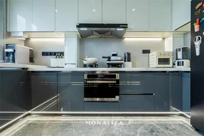 底下“无拉手橱柜”没有多余的装饰,让立面更简洁,符合当下年轻消费者的审美,营造出一种简约又高级的感觉。