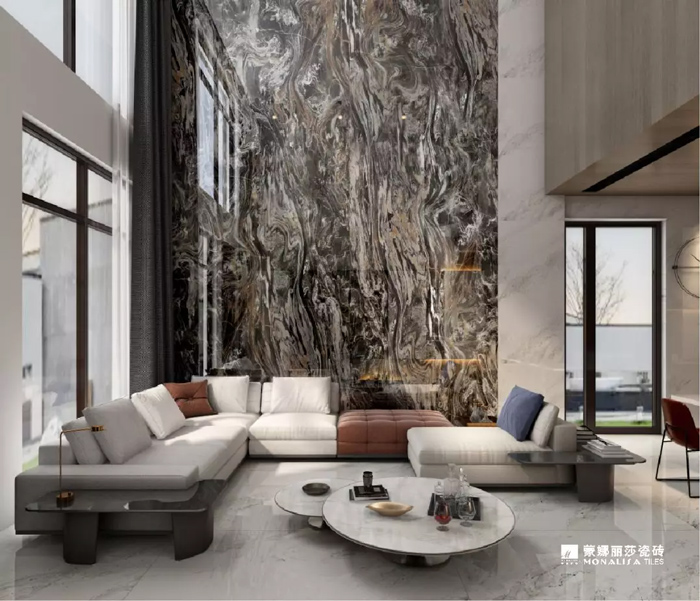 流动空间,即不把空间作为一种消极静止的存在,而是把它看做一种生动的力量。奉行空间艺术的精髓:「复刻自然」与「流动空间」,蒙娜丽莎3600mm×1600mm罗马超石代在创规格之大时,高度复刻自然流动的大理石纹理。