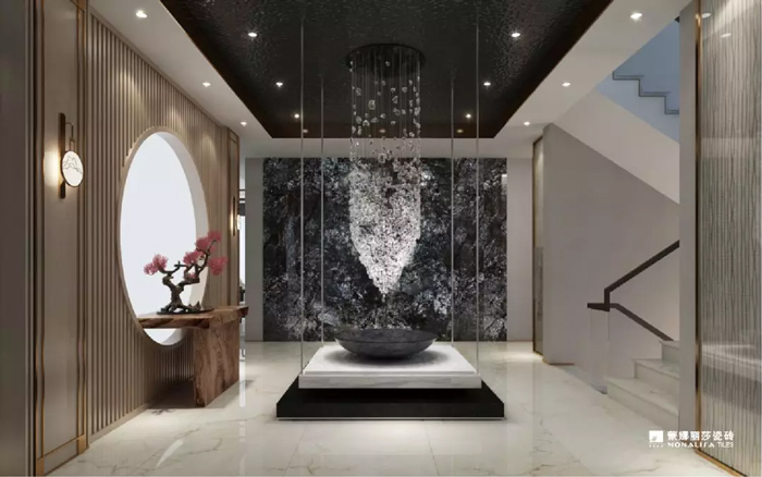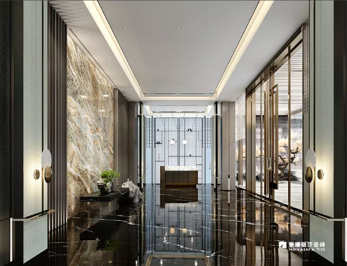 在工装和家装应用方面,新钻石流星在别墅、大户型、酒店大堂、会所等大面积铺地时,整个视觉效果是非常震撼的。