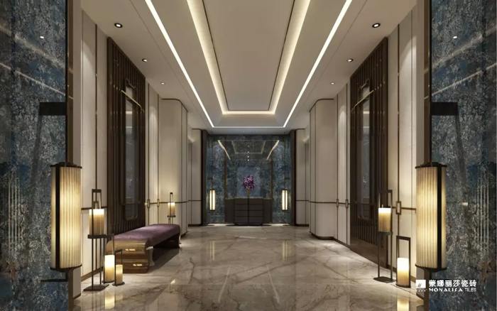 讲究品质的酒店对空间材质搭配出来的质感要求非常高,新梦幻蓝宝铺贴在酒店各个空间里,源自非洲上万元每立方米的石材纹理带来丰富的视觉效果,随便一个角落都是深得朋友圈喜爱的自拍胜地。