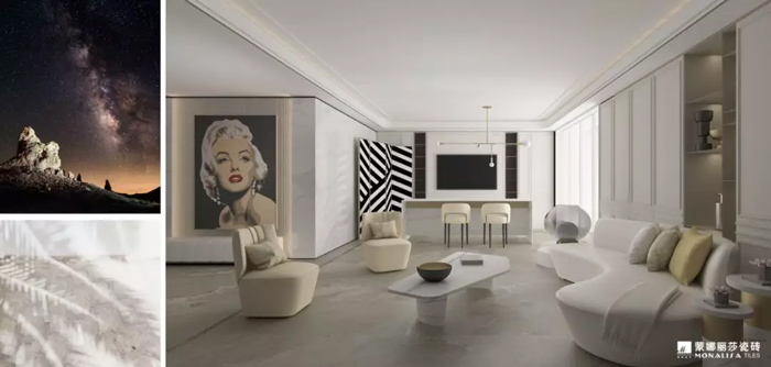 在与银河相拥而眠之前,可以先透过家居装修元素,感受辽远静谧的星空之美。蒙娜丽莎银河星辰系列,以独特的制作理念和令人惊叹的肌理质感,再现宇宙星辰之美,把幕天席地的空旷自然质感延伸到了家居风格上。