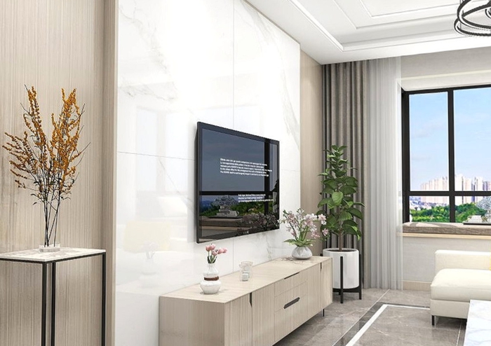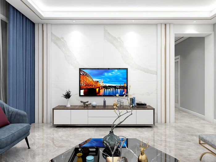 家里重新装修,设计师为我们推荐了“罗马宝石”新卡拉拉白瓷砖,1500mm×1500mm的大规格,很是少见。简约大气的大理石纹,在大尺寸瓷砖的承载下,切割应用在客厅的背景墙,在视觉效果上更能彰显空间的广阔感,装饰效果非常的大气。