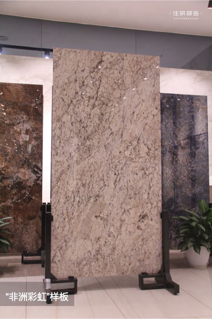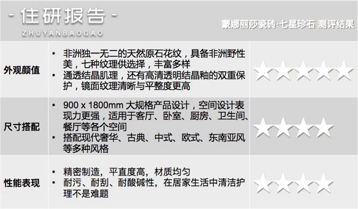 其独特的肌理,仿佛在诉说着光阴的故事。所以石材元素一直是家装界的经典、设计师的宠儿,这些年各大品牌也在不断创新,探索更多玩法。本次住研报告团队受邀到陶瓷上市公司蒙娜丽莎集团,测评一款新品——七星珍石系列,据说是精选非洲独一无二的天然名贵稀有原石珍品,历经三年原创研发出来的。