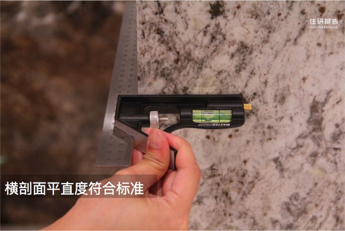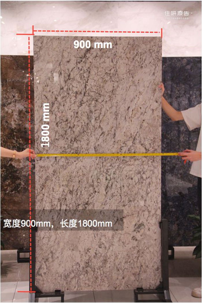 首先是尺寸精准度测量,这款瓷砖规格是900×1800mm,样板测量准确无误差。