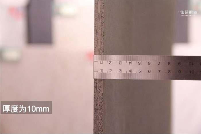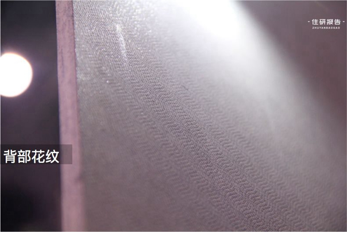 背面对纹理跟普通瓷砖不同,纹路较浅,同时也很密,这样才能保证1.8m的大板铺贴时更贴合。