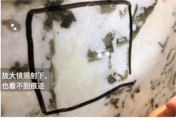 过了钢丝刷这一关,小编还不放心。接下来调试了一杯苏打水,倒在上面,期待着有什么反应。结果却什么也没发生,用抹布擦去苏打水,又恢复了原样。在家里日常用到的碱性剂物也就小苏打水,更浓的试剂平时也接触不到,所以不用担心。