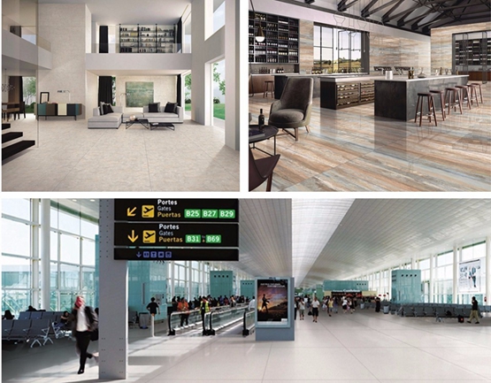 罗马超石代系列突出优势在于“大”,1200x2400mm大规格尺寸,承载丰富的纹理图案和细节,从视觉上给人一种空旷,延伸的感觉,呈现出一种华贵大气的效果。尤其适合铺贴在面积大、较开放的空间,是不少酒店、餐厅、会所、商场、户外空间等高品位场所的选择。